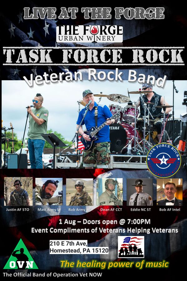 Task Force Rock (TFR) was born from a shared bond between four military Veterans and musicians who connected on LinkedIn. Coming from three different states, they converged in Greensburg, PA, with a mission to create something extraordinary. Hosted by Operation Vet NOW (OVN) , the group spent four days rehearsing three hours of music, blending their talents and shared experiences.